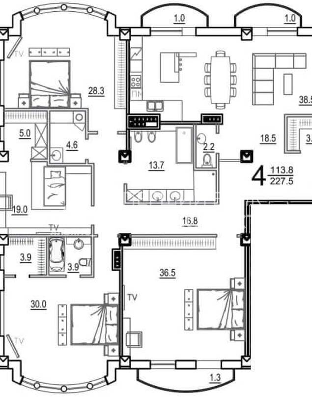 | Жилая/Кухня, кв.м. | 165.00/39.00 | ||
