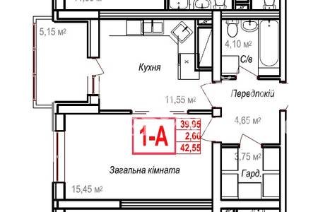 | Жилая/Кухня, кв.м. | 15.50/15.30 | ||